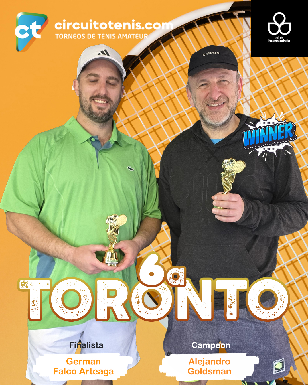 La final del Torneo Americano de Toronto en la categoría 6a, disputada en el Club Buena Vista de San Fernando, tuvo como protagonista a Alejandro Goldsman, quien se consagró campeón tras vencer a Germán Falco Arteaga por un ajustado 7-6. Fue un partido lleno de emoción, con cambios de mando y un desenlace que se definió en los puntos más apretados.