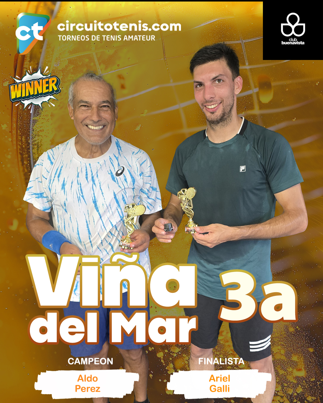 Con inteligencia y absoluto control del desarrollo, Aldo Nicolás Pérez se quedó con el título del Torneo Americano de Viña del Mar tras vencer a Ariel Galli por 6-1 en la final disputada en Buenavista. Fue una definición en la que Aldo supo interpretar mejor cada momento del partido y capitalizar las circunstancias a su favor.