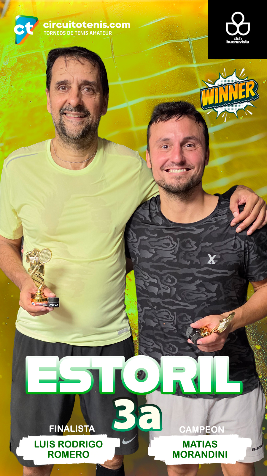 En un duelo equilibrado y bien disputado, Matías Morandini logró imponerse ante Luis Rodrigo Romero por 6-4 en el Torneo de Estoril jugado en el Club Buenavista. El partido se desarrolló con mucha paridad desde el inicio, con ambos jugadores sosteniendo intercambios largos y buscando imponer su estilo.